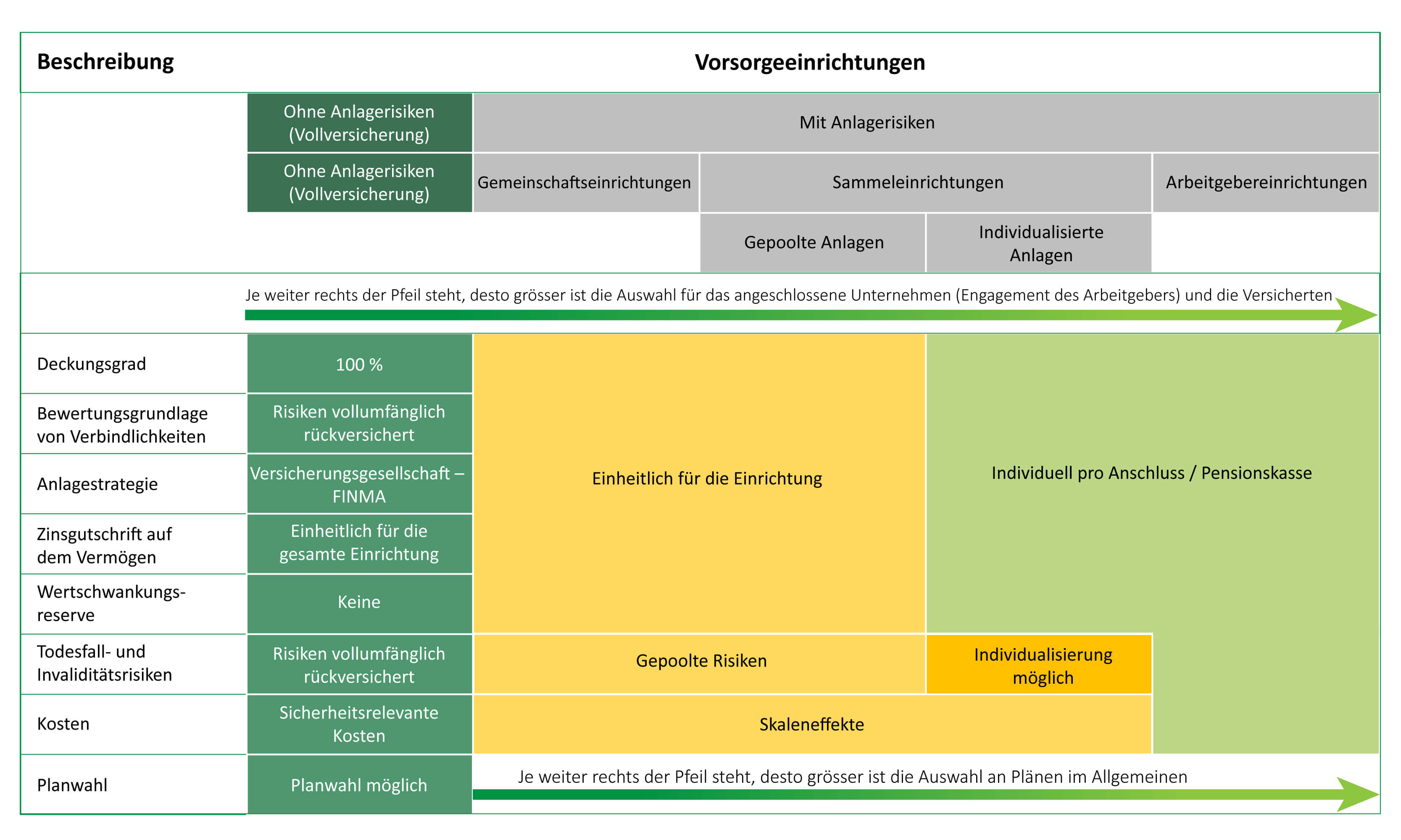 Angebot an beruflichen Vorsorgemodellen und -vehikeln